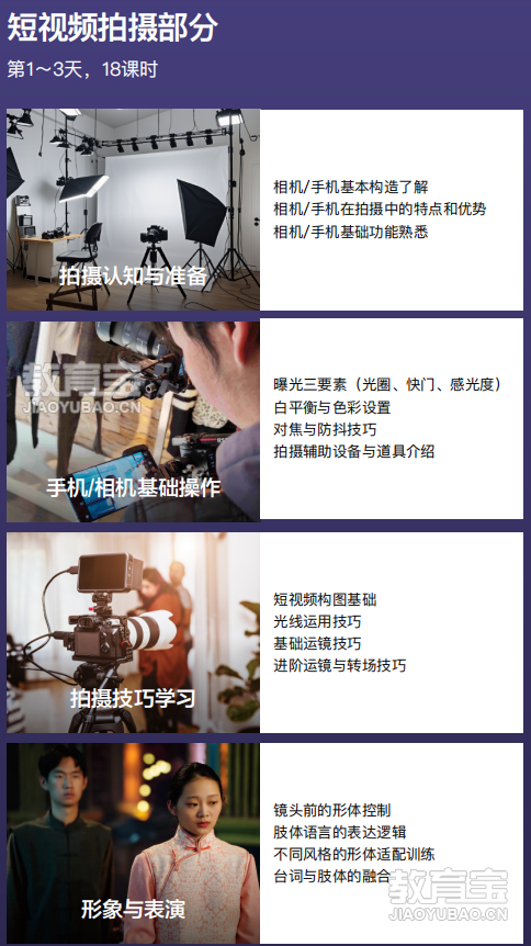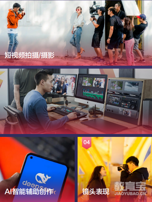 本课程聚焦短视频全流程创作,适配零基础与进阶学习者。涵盖短视频拍摄(运镜、构图、布光技巧)、双剪辑工具教学(剪映高效出片、PR专业精剪)、达芬奇调色(校色与风格化设计),还融入 DeepSeek AI 辅助(脚本灵感、趋势分析)与形体表演(镜头前表情动作管理)。全程实操导向,从素材采集到成片输出,助学员快速掌握吸睛内容制作能力,轻松开启短视频创作或职业之路。